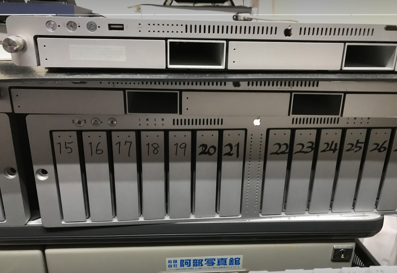 最初に導入したサーバーは懐かしのMacOS "X-serve"。Raid5で7Teraだった。それが現在自社運用データ容量は140Tera。さらに外部レンタルサーバーに100Tera。50倍に膨れている。